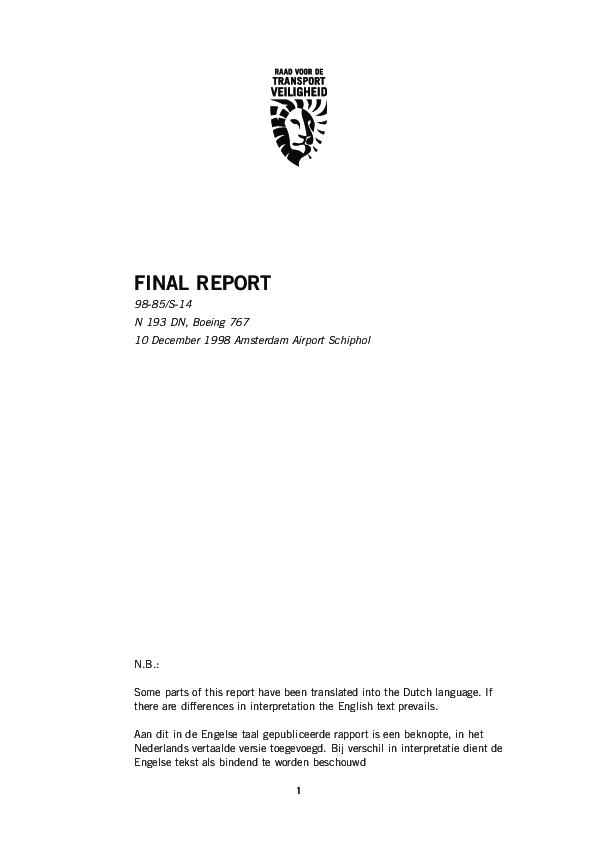 Dutch TSB - Final Report 98-85/S-14, Runway Incursion, 10 Dec 98, Amsterdam Schiphol