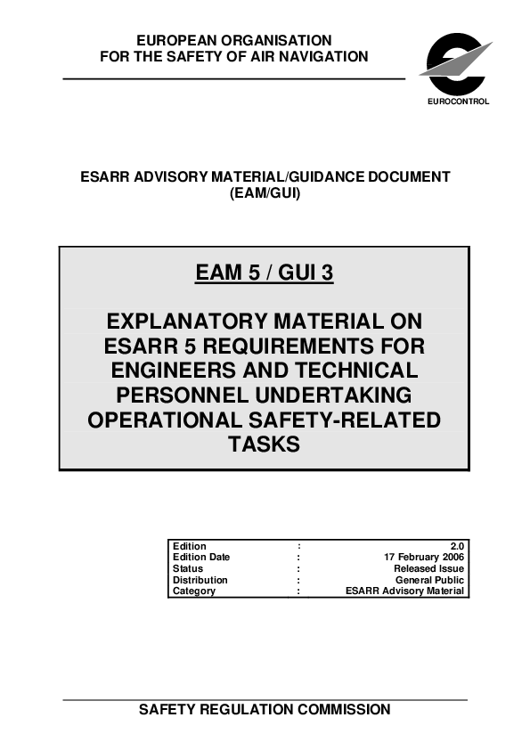 EAM 5 / GUI 3- Explanatory Material On ESARR 5 Requirements For Engineers And Technical Personnel