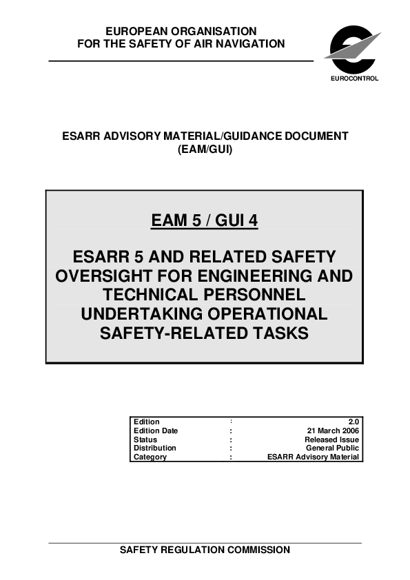 EAM 5 / GUI 4- ESARR 5 and Related Safety Oversight for Engineering and Technical Personnel Undertak