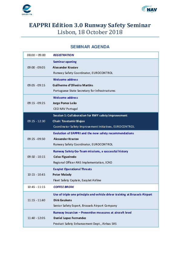 EAPPRI Edition 3.0 Runway Safety Seminar Agenda 18 Oct 2018