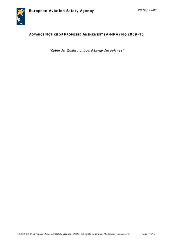 Advanced NPA requesting evidence of contaminated cabin air events.