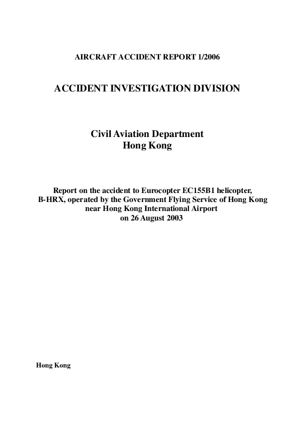 Flying Service (GFS), performing a casualty evacuation mission (casevac), impacted the elevated terrain in Tung Chung Gap near Hong Kong International airport.