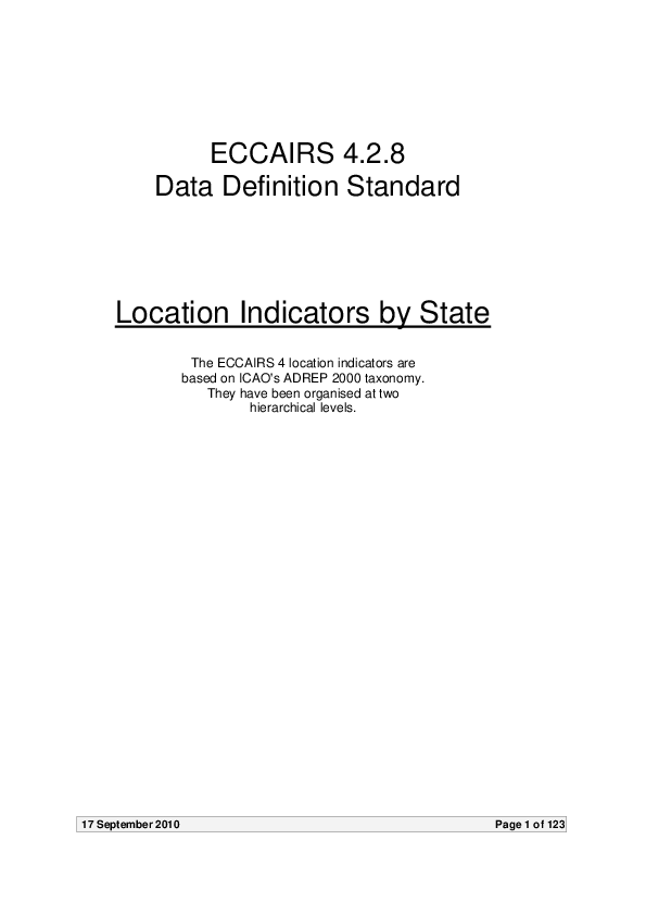 The ECCAIRS 4 location indicators are based on ICAO's ADREP 2000 taxonomy. They have been organised at two hierarchical levels.