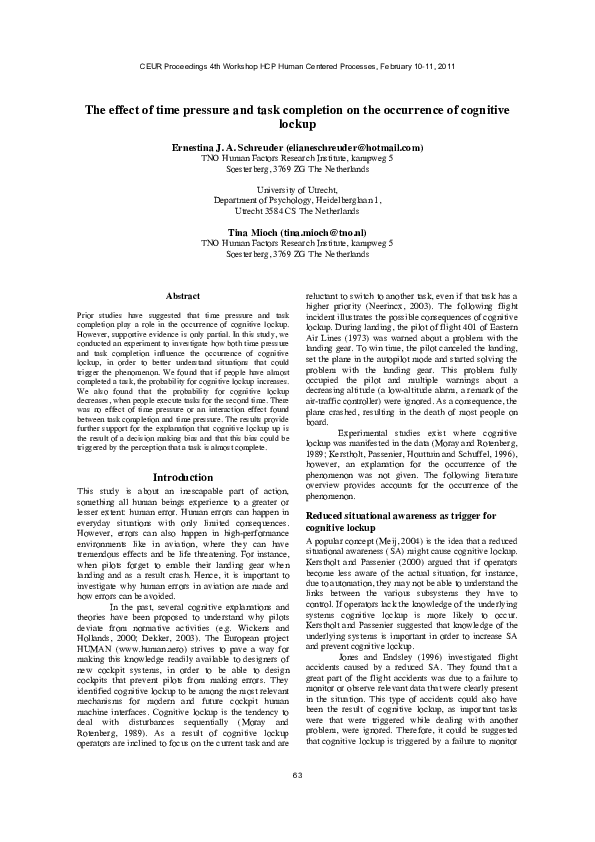 The effect of time pressure and task completion on the occurrence of cognitive lockup