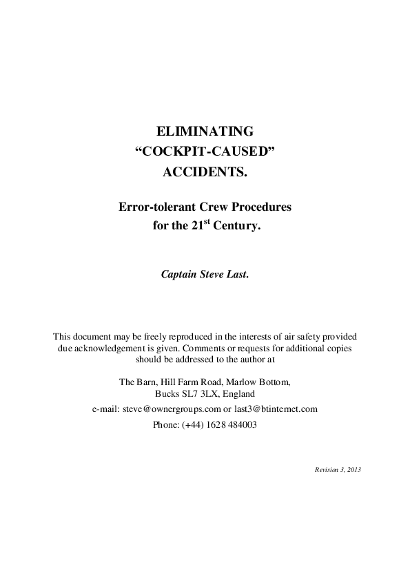 Eliminating Cockpit-Caused Accidents: Error-tolerant Crew Procedures for the 21st Century