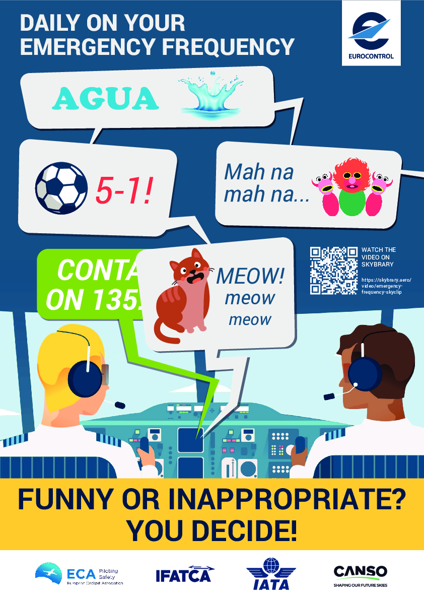 The purpose of the Emergency Frequency Awareness Poster is to support safety promotion within aviation organisations. It highlights the importance of radio telephony discipline on emergency frequencies. The PDF-Version is best suited for digital distribution, e.g. in a safety note