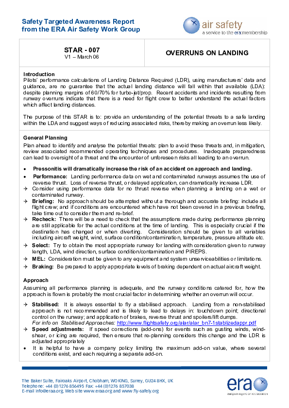 ERA - STAR007 March Overruns on Landing