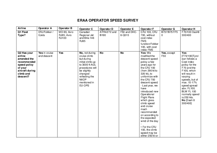 Collated responses from ERA airlines to EUROCONTROL safety alert regarding observed greater ranges of speed for same aircraft types, linked to increasing cost of aviation fuel.