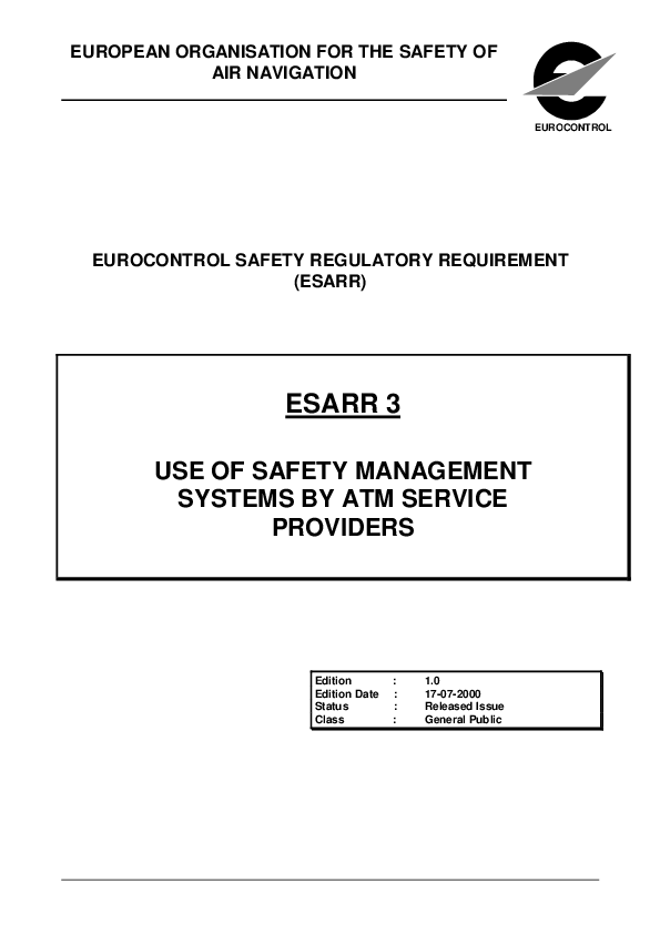 ESARR 3 - Use of Safety Management System by ATM Service Providers