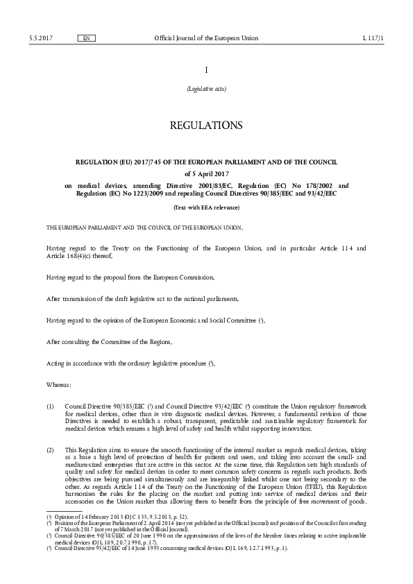 Regulation (EU) 2017/745 on medical services