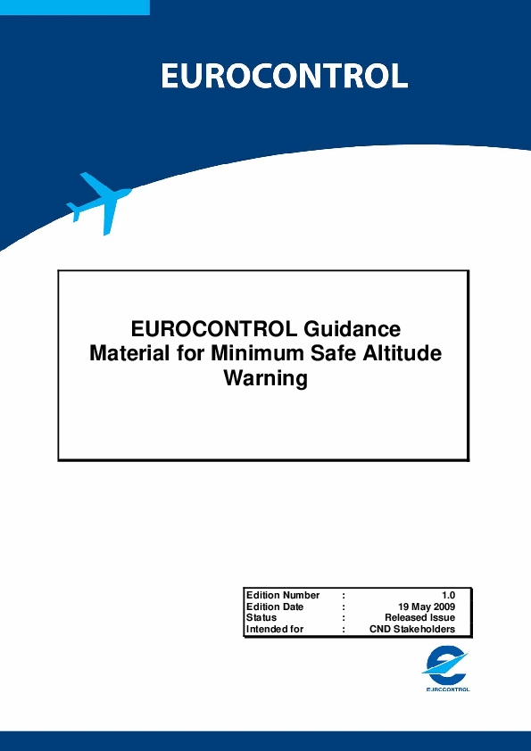 This document contains comprehensive guidance material to assist in implementing the EUROCONTROL Specification for Minimum Safe Altitude Warning. It covers the full MSAW lifecycle, including definition of objectives; implementation or change; tuning and validation; as well as operating and monitoring.