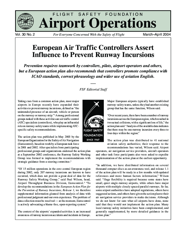 Prevention requires teamwork by controllers, pilots, airport operators and others, but a European action plan also recommends that controllers promote compliance with ICAO standards, correct phraseology and wider use of Aviation English