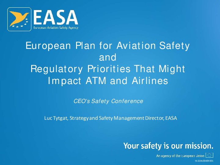 European Plan for Aviation Safety and Regulatory Priorities That Might Impact ATM and Airlines