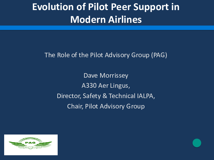Evolution of Pilot Peer Support in Modern Airlines | David Morrissey, Chairman, Pilot Advisory Group and Director Safety & Technical, Aer Lingus & IALPA