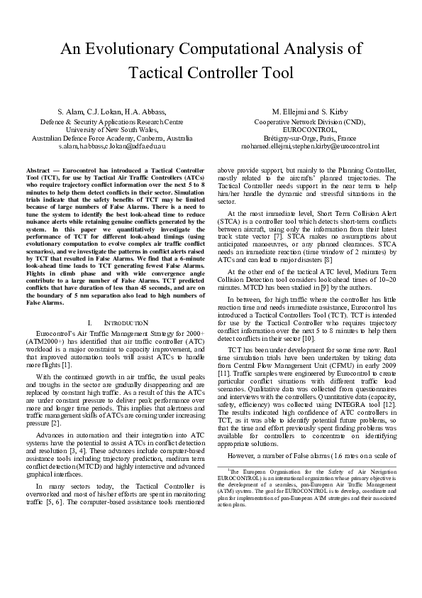 An Evolutionary Computational Analysis of Tactical Controller Tool