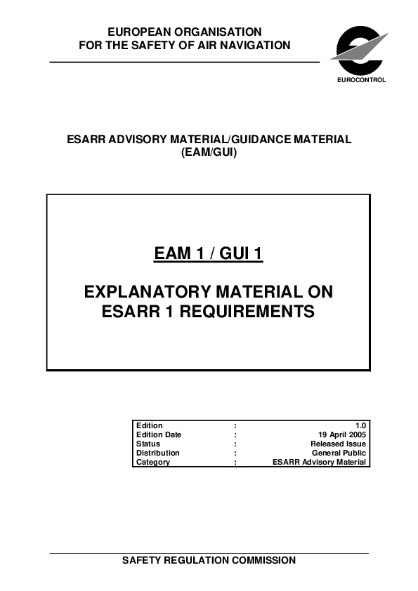 The document describes the mandatory provisions of ESARR 1 by explaining their rationale and the most significant implications related to their implementation. The document also includes advice, recommendations and information on further guidance which is available or under development.