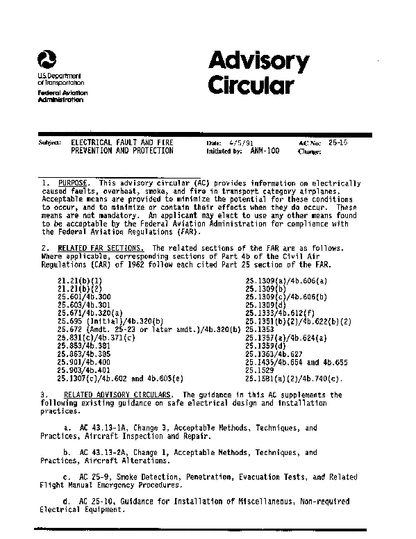 FAA AC 25-16: Electrical Fault and Fire Prevention and Protection