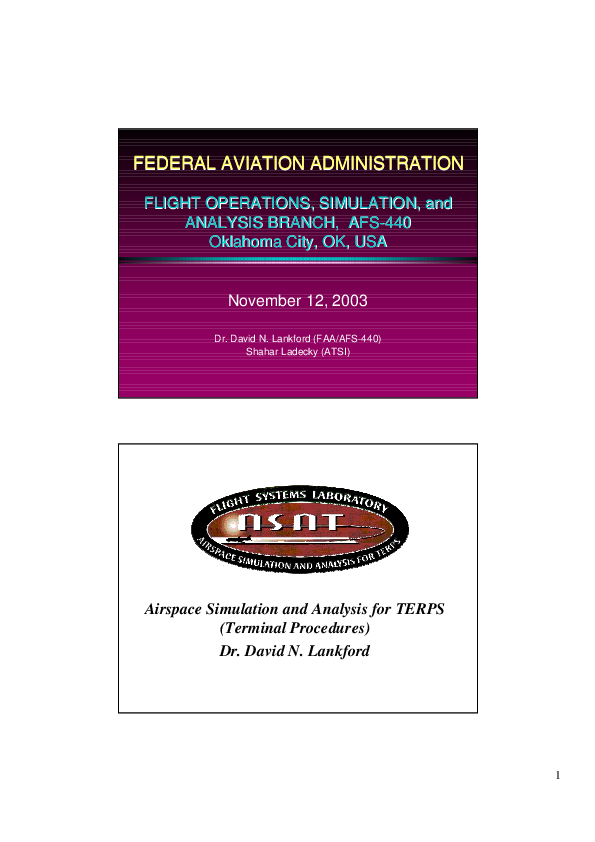 D.N. Lankford and S. Ladecky, FAA, Flight operations, simulation and analysis branch, Airspace Simulation and Analysis for TERPS (Terminal Procedures), 12 November 2003, http://wwwe.onecert.fr/projets/WakeNet2-Europe/fichiers/programmeLondon…