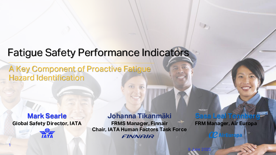 Fatigue Safety Performance Indicators (SPIs): A Key Component of Proactive Fatigue Hazard Identification, the Perspective from the Airlines | Mark Searle, Global Director - Safety, IATA & Johanna Tikanmaki, Finnair & Sasa Janine Leal Tennberg, Air Europa