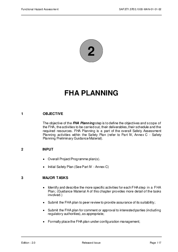 The objective of the FHA planning step objective is to the define objectives and scope of the FHA, the activities to be carried out, their deliverables, their schedule and the required resources.