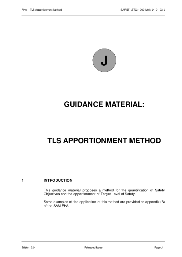 This guidance material proposes a method for the quantification of Safety Objectives and the apportionment of Target Level of Safety. Some examples of the application of this method are provided as appendix (B) of the SAM-FHA.