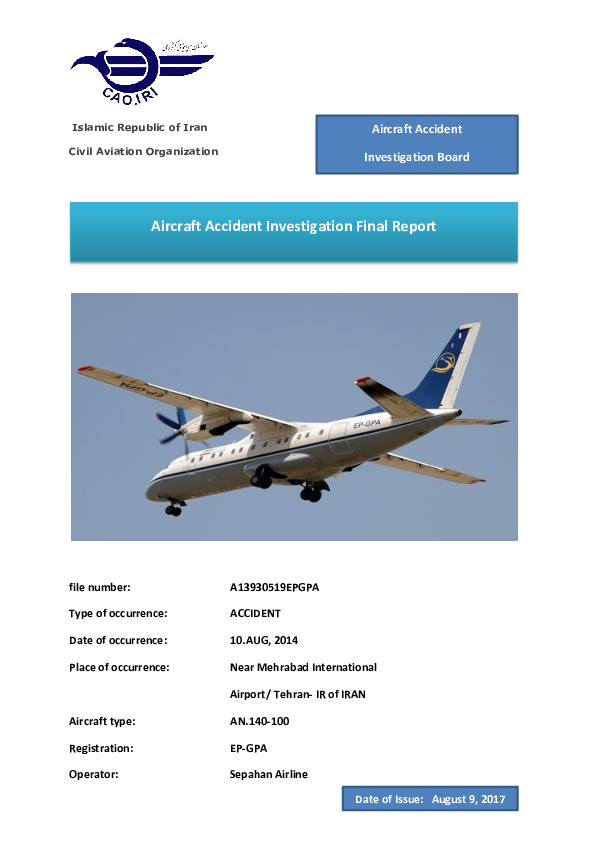 Final Report A13930519EPGPA: A140 (EP-GPA) vicinity Tehran Mehrabad Iran, 10 Aug 2014