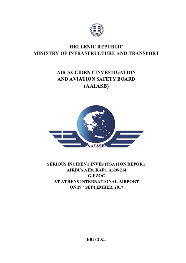 Final Report A320 (G-EZOC) en-route NW Greece, 29 September 2017