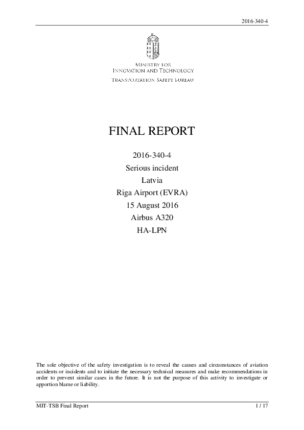 Final Report A320 (HA-LPN), en-rote over northern Italy, 15 August 2016