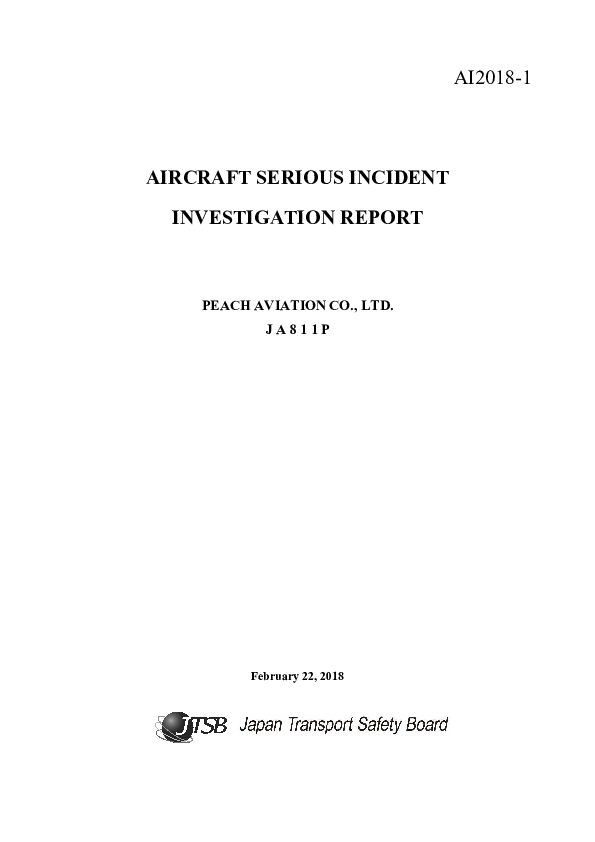 Final Report A320 (JA811P), Tokyo Haneda Japan, 22 Dec 2016