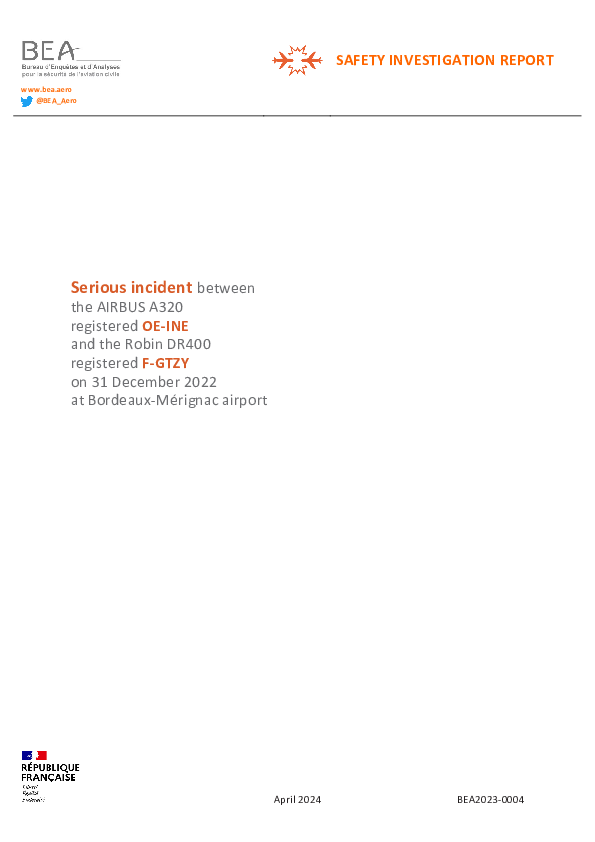 Final Report A320 (OE-INE) & DR40, Bordeaux France, 31 September 2022