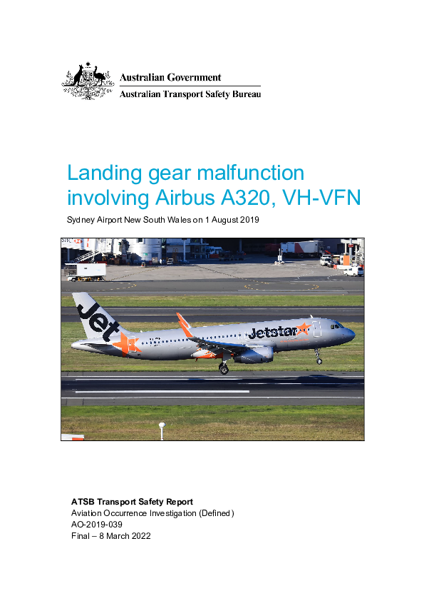 Final Report A320 (VH-VFN), Sydney Australia, 1 August 2019