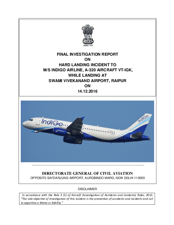 Final Report A320 (VT-IGK) Raipur India, 14 Dec 2016