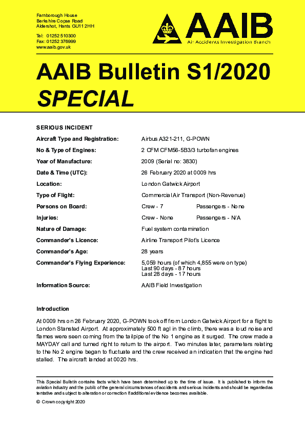 Final Report A321 (G-POWN) vicinity London Gatwick UK, 26 Feb 2020