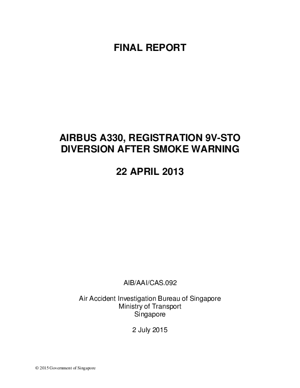 Final Report A333 (9V-STO), en-route southern Myanmar, 22 Apr 2013