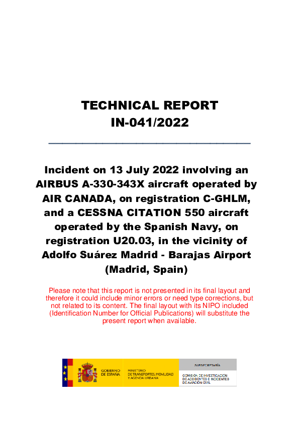 Final Report A333 (C-GHLM) & C550 (U20.03), vicinity Madrid Barajas Spain, 13 July 2022