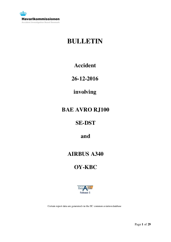 Final Report A343 / RJ1H collision at Copenhagen Denmark, 26 Dec 2016