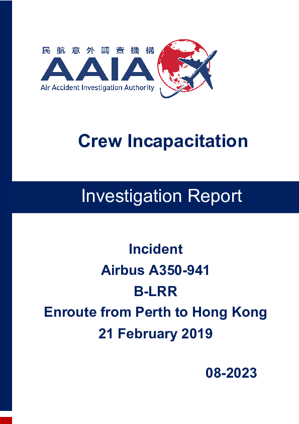 On 21 February 2019, the Captain of an Airbus A359-900 in the cruise en-route to Hong Kong became and remained incapacitated. The First Officer took over control and completed the flight as planned without further event. The Cabin Crew Manager was called to the flight deck and advised and a doctor on board provided medical assistance to the Captain who remained conscious but with slurred speech and was hospitalised on arrival. It was concluded that the response to the situation had been effectively handled and the remainder of the flight was completed in accordance with all applicable procedures and training.