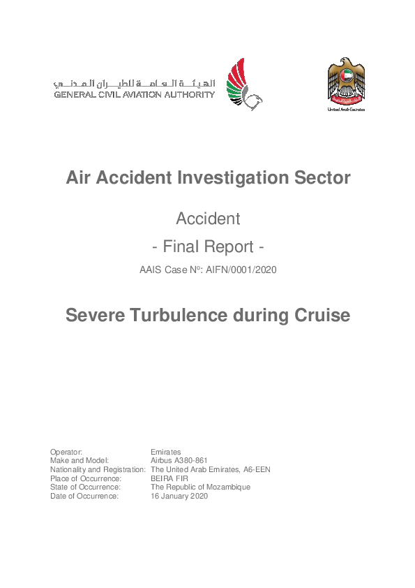 On 16 January 2020 an Airbus A380 in the cruise at FL 400 in an area of correctly forecast convective turbulence encountered severe turbulence not anticipated by the crew who had not put on the seatbelt signs or alerted the cabin crew in time for the cabin to be secured. An unsecured passenger was seriously injured and several other passengers and an unsecured member of cabin crew were lifted off their feet but managed to avoid injury. The Investigation concluded that the flight crew had not made full use of the capabilities of the available on board weather radar equipment.