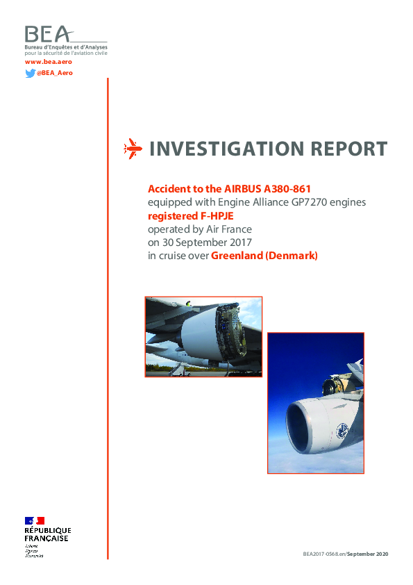 Final Report A388 (F-HPJE) en route southwest Greenland 30 Sept 2017