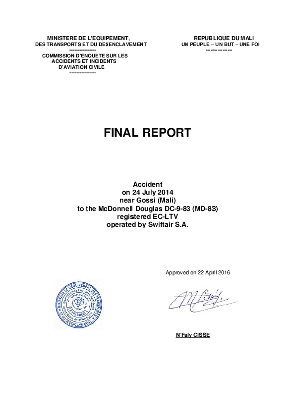 Final Report Accident near Gossi Mali to MD83 24 July 2014