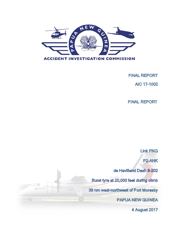 Final Report AIC 17-1002 : DH8B (P2-ANK) west northwest of Port Moresby Papua New Guinea, 4 Aug 2017