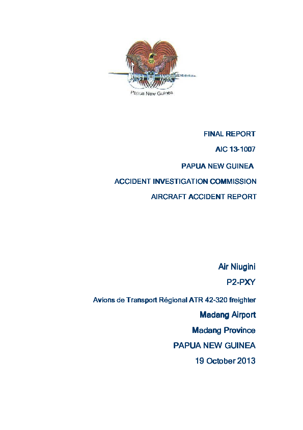 Final report AIC13-1007: AT43 (P2-PXY) Madang Papua New Guinea, 19 Oct 2013