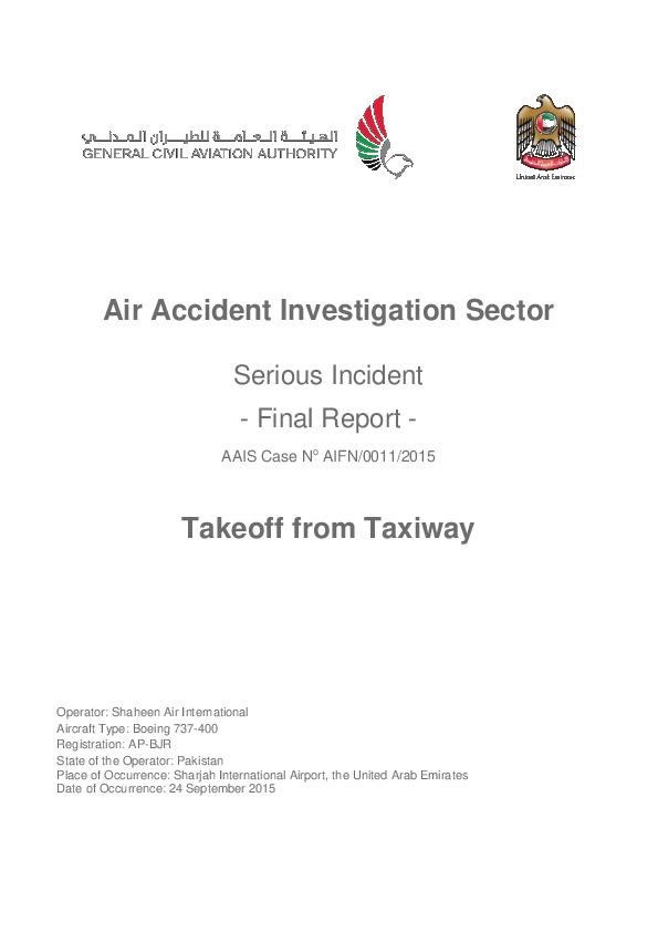 Final Report AIFN/0011/2015: B734 (AP-BJR, Sharjah UAE, 24 Sept 2015