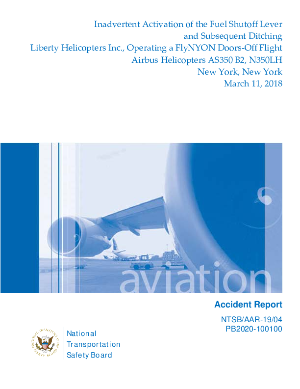 On 11 March 2018, an Airbus AS350 engine failed during a commercial sightseeing flight and autorotation was initiated. The pilot then noticed that the floor-mounted fuel cut-off had been operated by part of the tether system of one of the five passengers but there was insufficient time to restore power. On water contact, the automatic floatation system operated asymmetrically and the helicopter submerged before the occupants could evacuate. Only the pilot was able to release his harness and escape because the unapproved adapted passenger harnesses had no quick release mechanism. The Investigation found systemic inadequacy of the operator's safety management system.