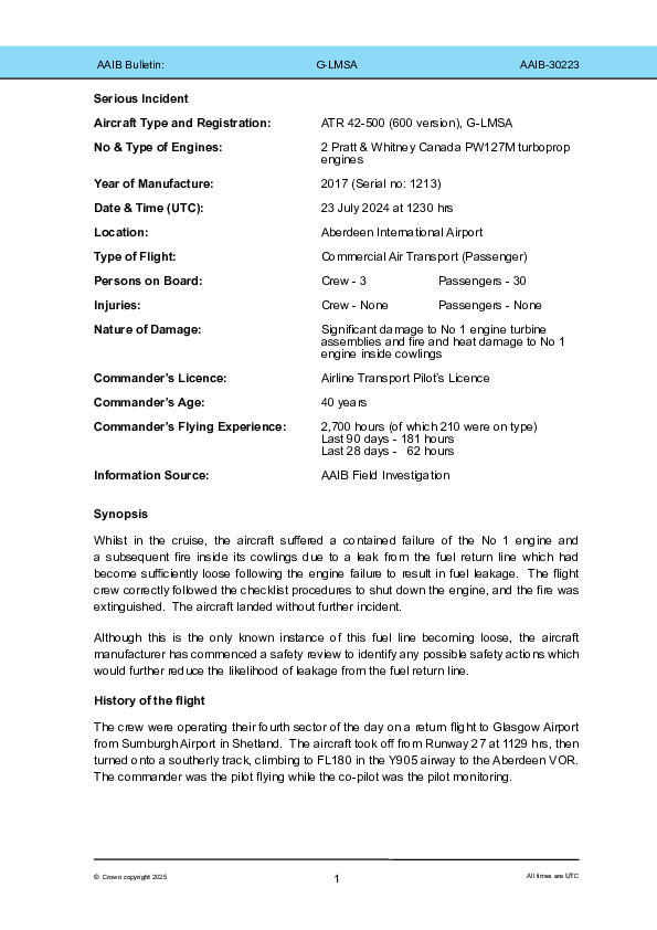 Final Report AT46 (G-LMSA), en-route NE of Aberdeen UK, 23 July 2024