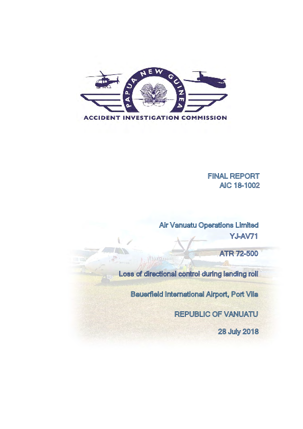 Final Report AT75 (YJ-AV71) Port Villa Vanuatu, 28 July 2018
