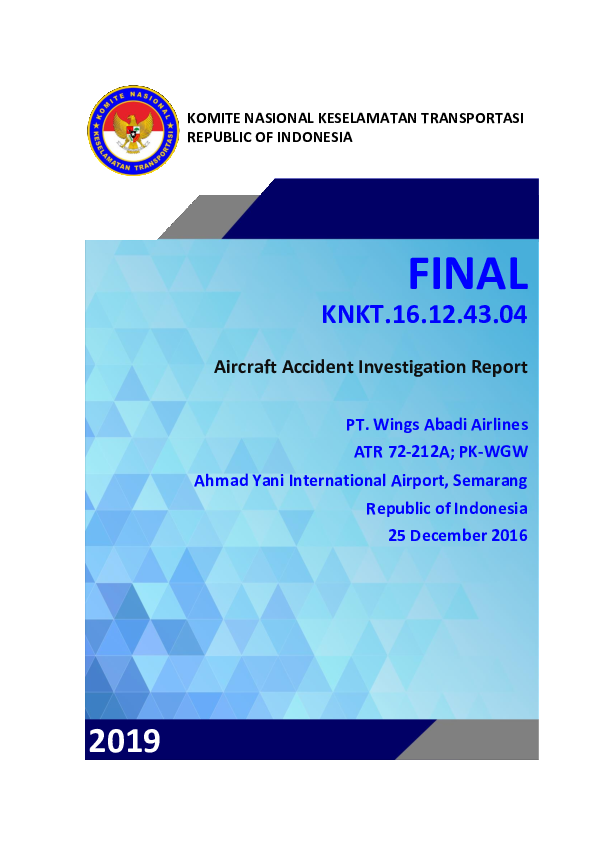 Final Report AT76 (PK-WGW), Semarang Indonesia, 25 December 2016