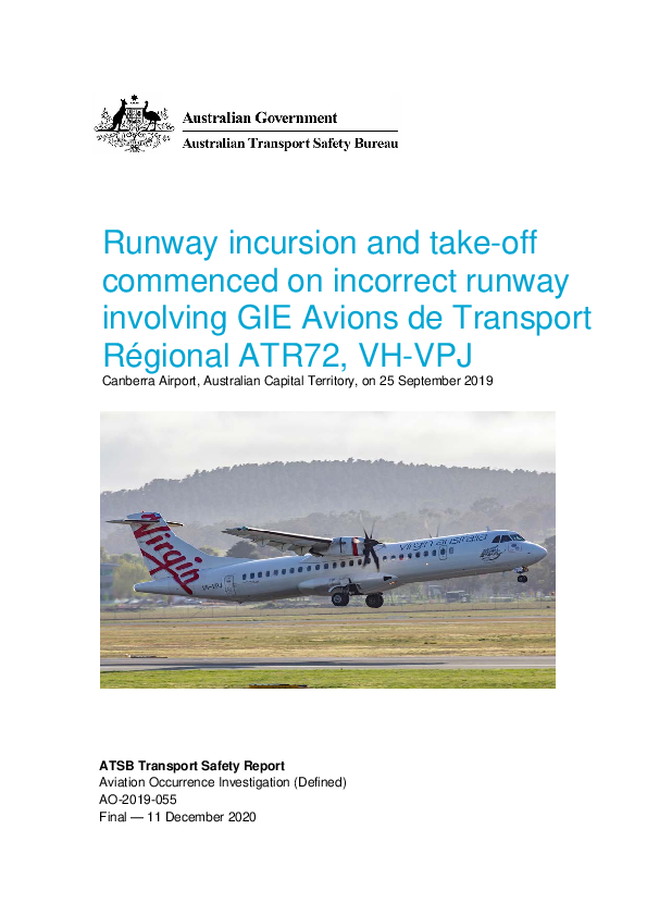 On 25 September 2019, an ATR 72-600 about to depart from Canberra at night but in good visibility failed to follow its clearance to line up and take off on runway 35 and instead began its takeoff on runway 30. ATC quickly noticed the error and instructed the aircraft to stop which was accomplished from a low speed. The Investigation concluded that the 1030 metre takeoff distance available on runway 30 was significantly less than that required and attributed the crew error to attempting an unduly rushed departure for potentially personal reasons in the presence of insufficiently robust company operating procedures.