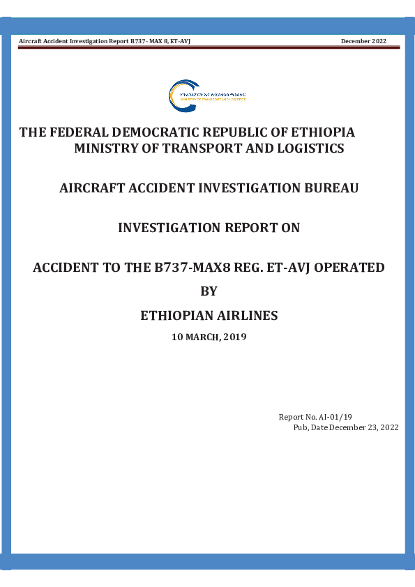 Final Report B38M (ET-AVJ) southeast of Addis Ababa Ethiopia 10 Mar 2019