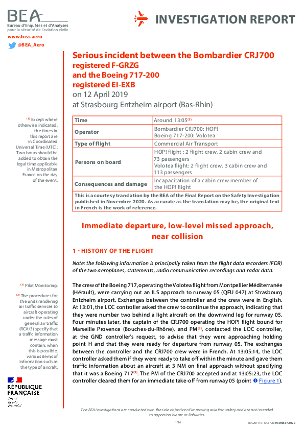 Final Report B712 (EI-EXB) & CRJ7 (F-GRZG) vicinity Strasbourg France 12 April 2019
